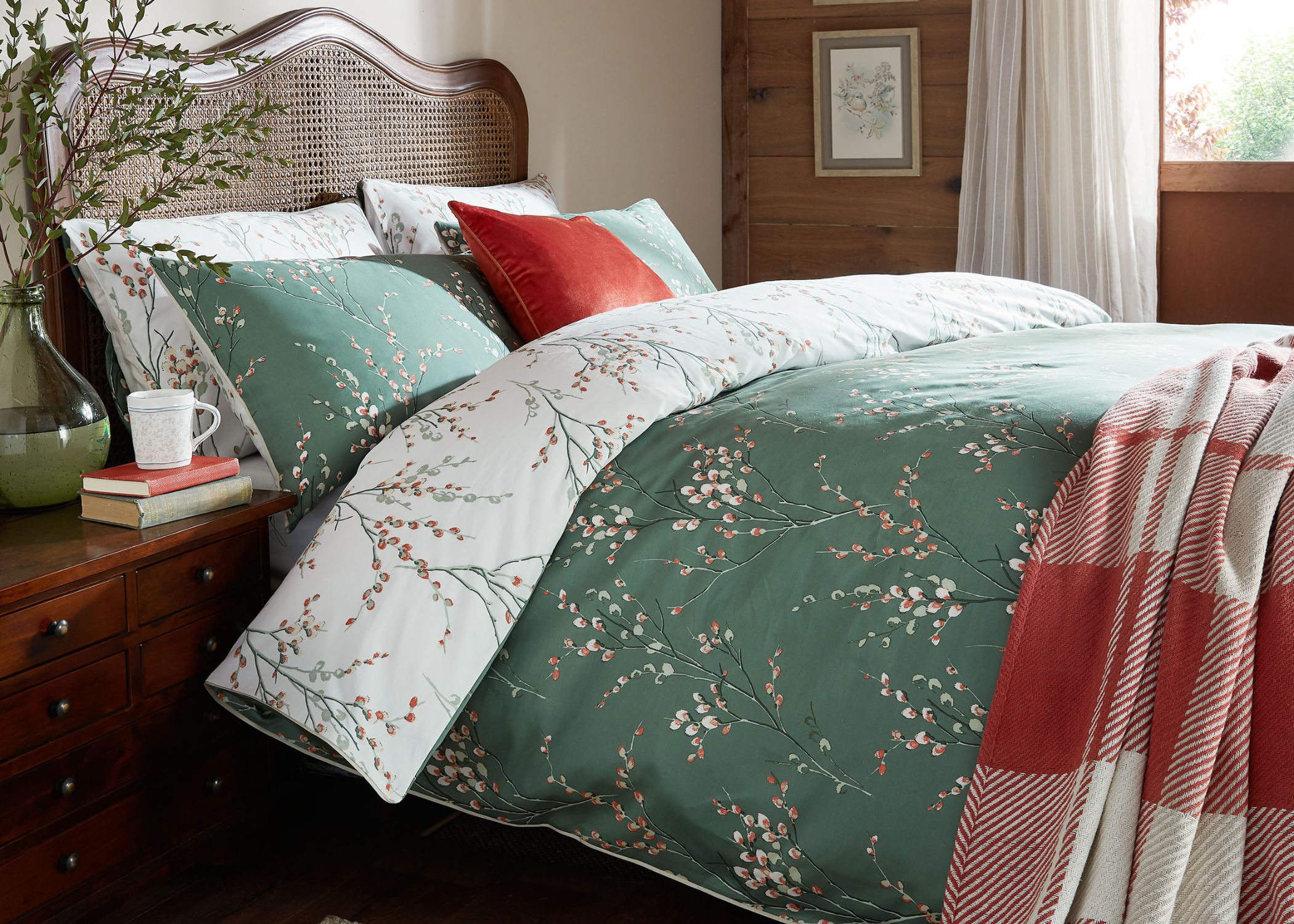 طقم غطاء لحاف "Pussy Willow" من Laura Ashley باللون الأخضر السرخسي