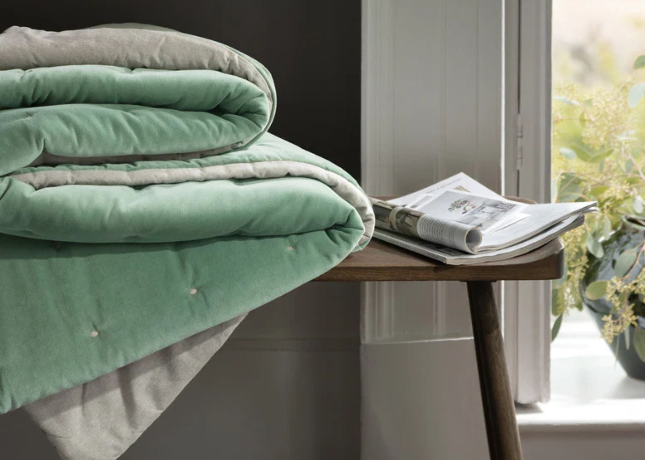 ناعمة للغاية ومثالية للاسترخاء بأناقة، بطانيات جايبور المبطنة ووسائدها المتناسقة مصنوعة من مخمل قطني 100% مع ظهر من الكتان الطبيعي. هذه البطانية والوسادة الأنيقة مثالية لإضفاء لمسة مميزة وأنيقة على أي غرفة. متوفرة بمجموعة متنوعة من الألوان لتكمل أناقة غرفتك.