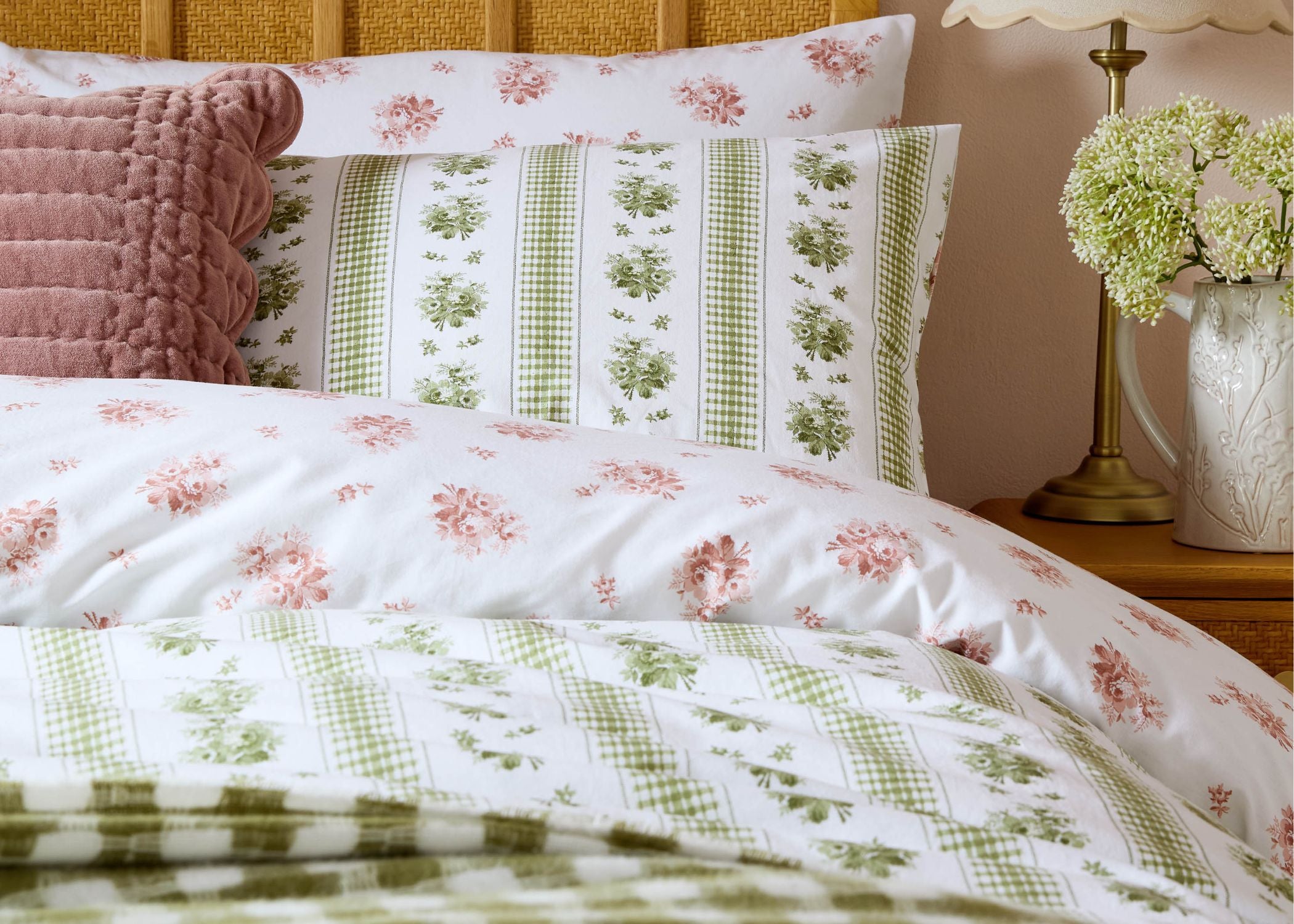 Charming and playful, the Pensham Stripe Bedding Set by Laura Ashley features a stylised floral stripe that blends classic gingham checks with elegant cottage-style floral bouquets. Printed on a washed cotton base, it offers a relaxed, soft feel while adding timeless countryside charm and a subtle cottage core touch to your bedroom.
