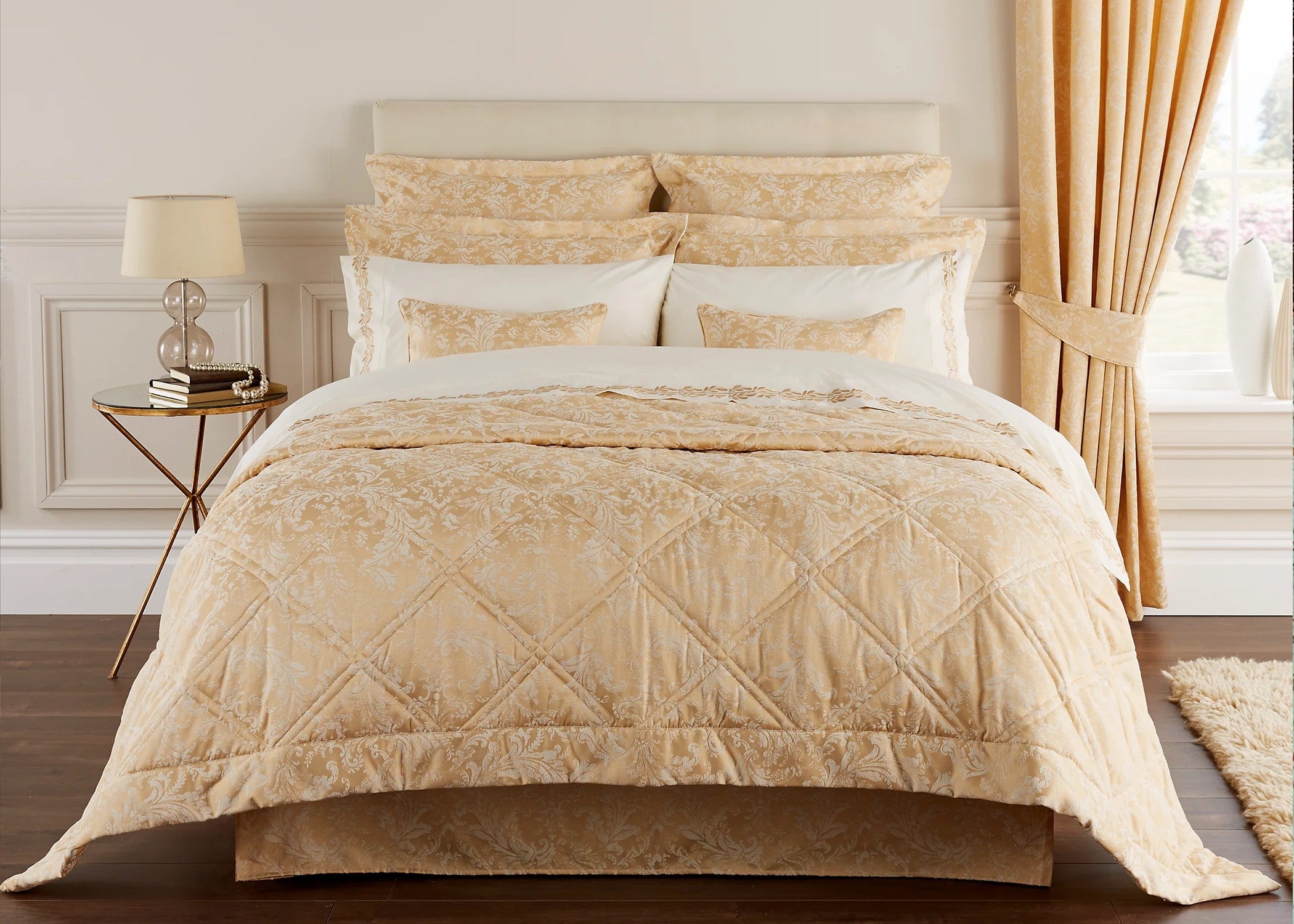 This lovely classic jacquard with a stylish damask style design will add a real touch of elegance to your bedroom. The detailed pattern is highlighted beautifully by the subtle sheen of the fabric. Available in Silver Grey and Rich Gold colourways