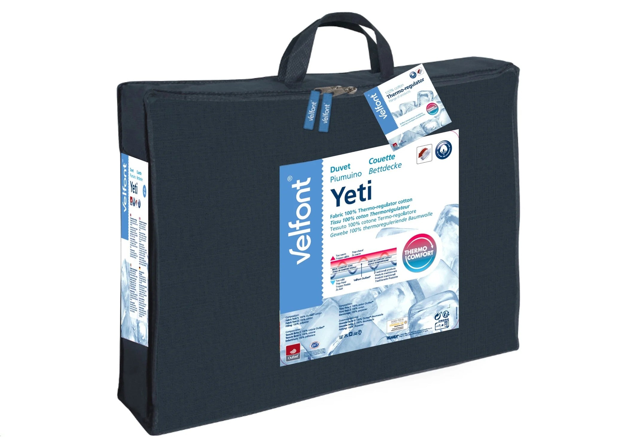 Velfont's Yeti duvet is ideal for people who experience temperature and humidity changes during the night. With a Neotherm® filling that is soft and lightweight, this lofty duvet can be machine-washed.