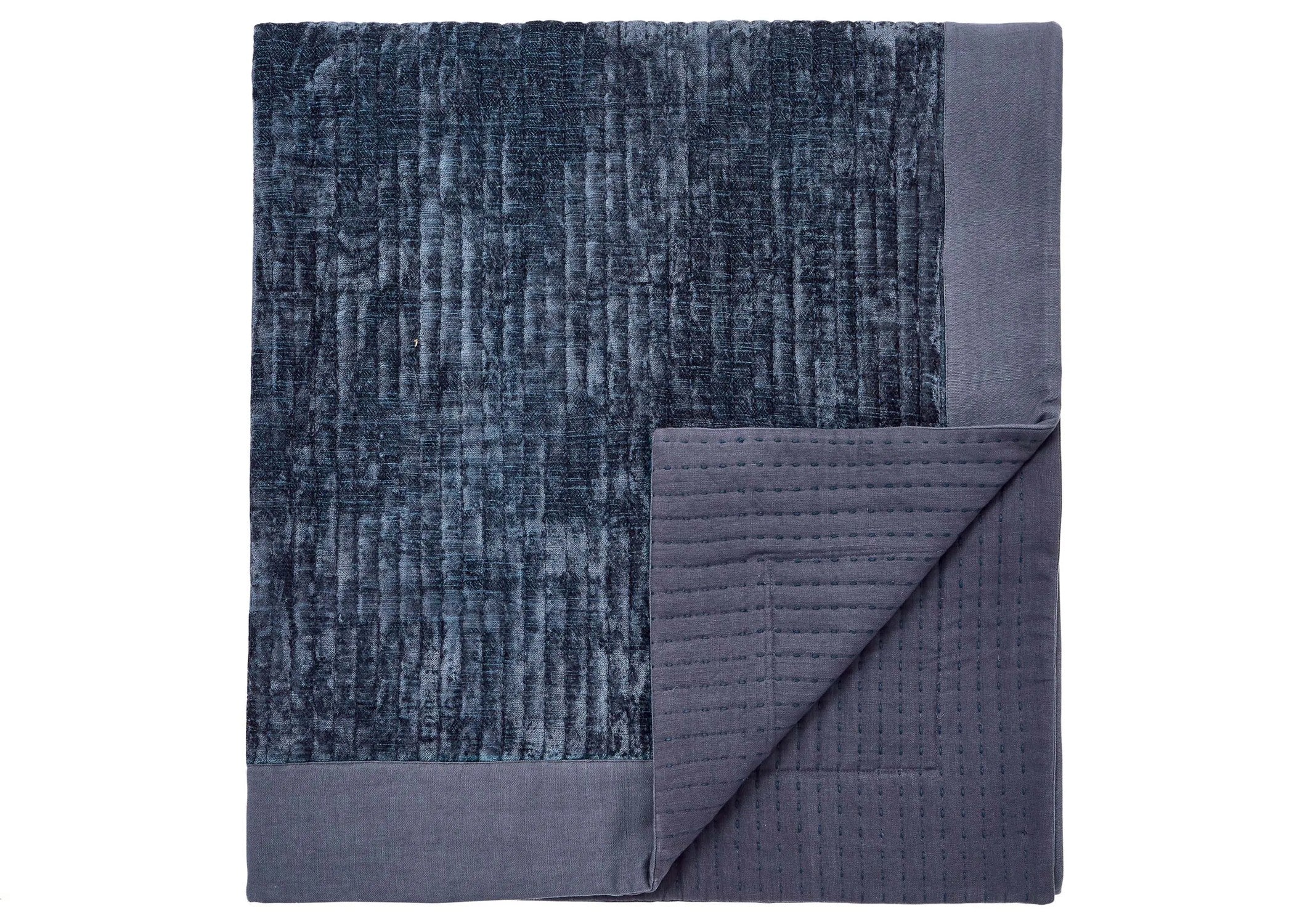 Complete the look with the navy poly-velvet square pillowcase and the coordinating throw finished with cotton slub edging on all four sides. A paisley pattern cushion adds a refined and sophisticated finishing touch.