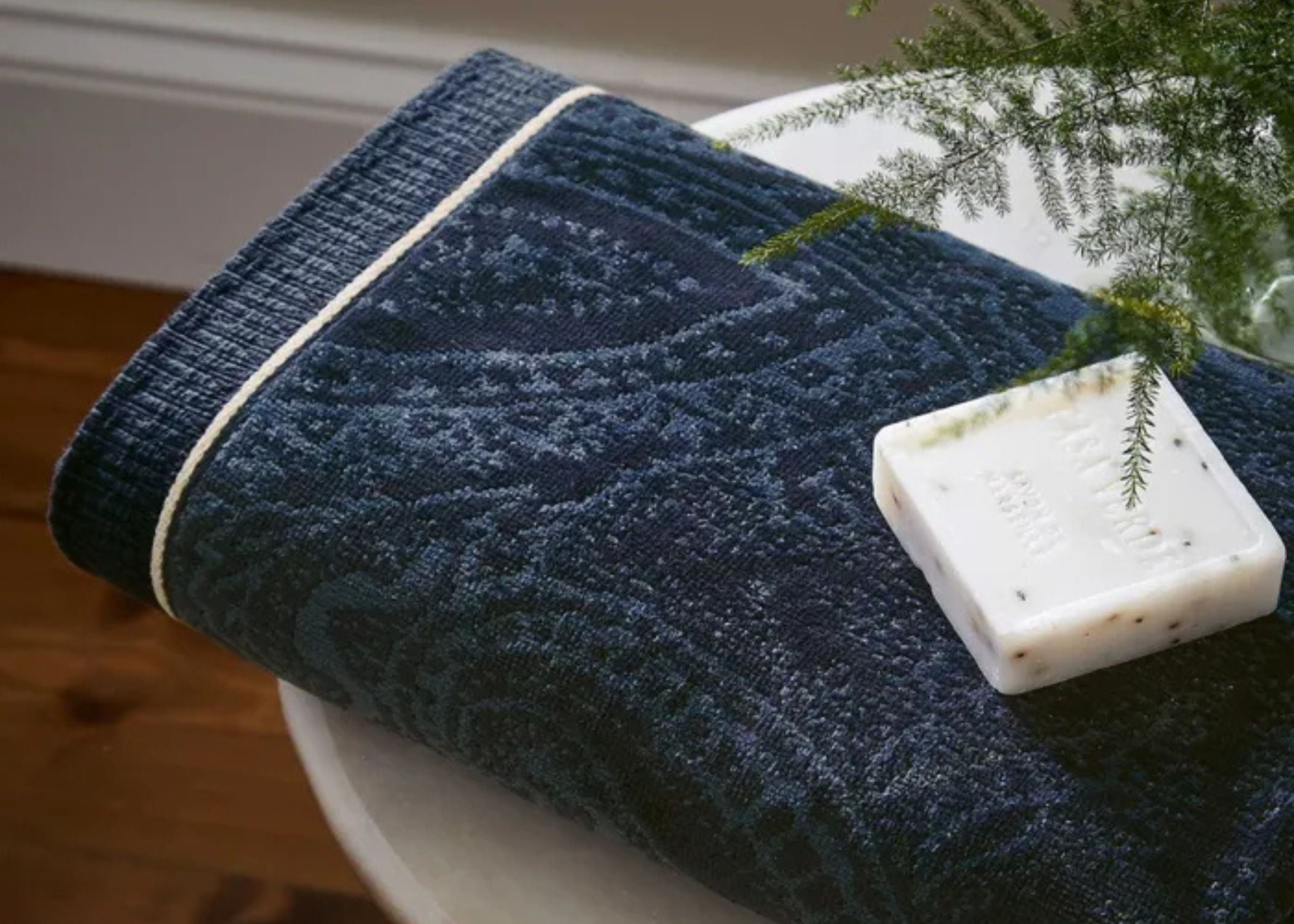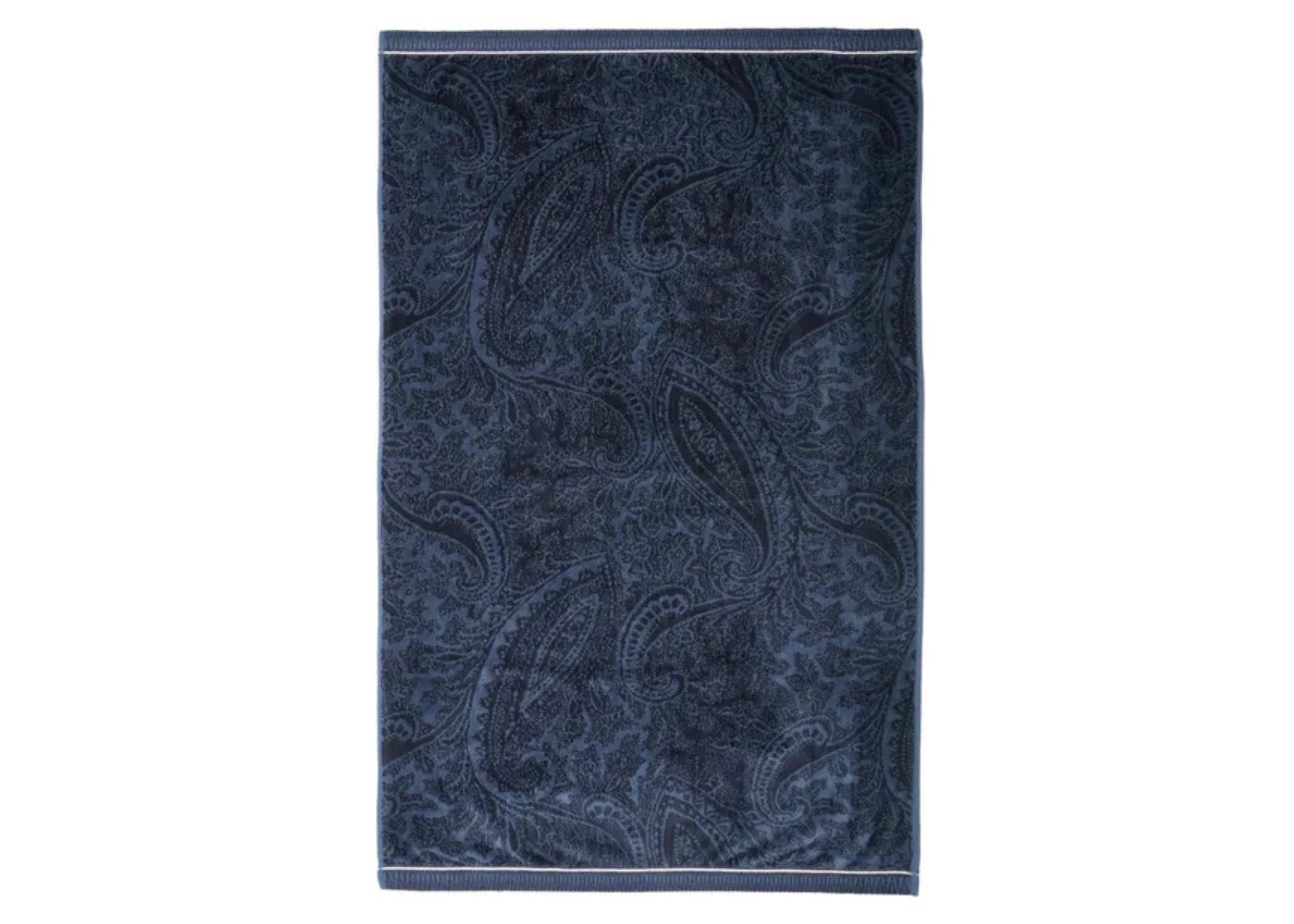 Make a bold statement in your bathroom with the Freya towel. Featuring an all-over paisley design in rich navy, it brings striking style and elegance to any space. A jacquard woven hem at both ends adds a refined finishing touch.
