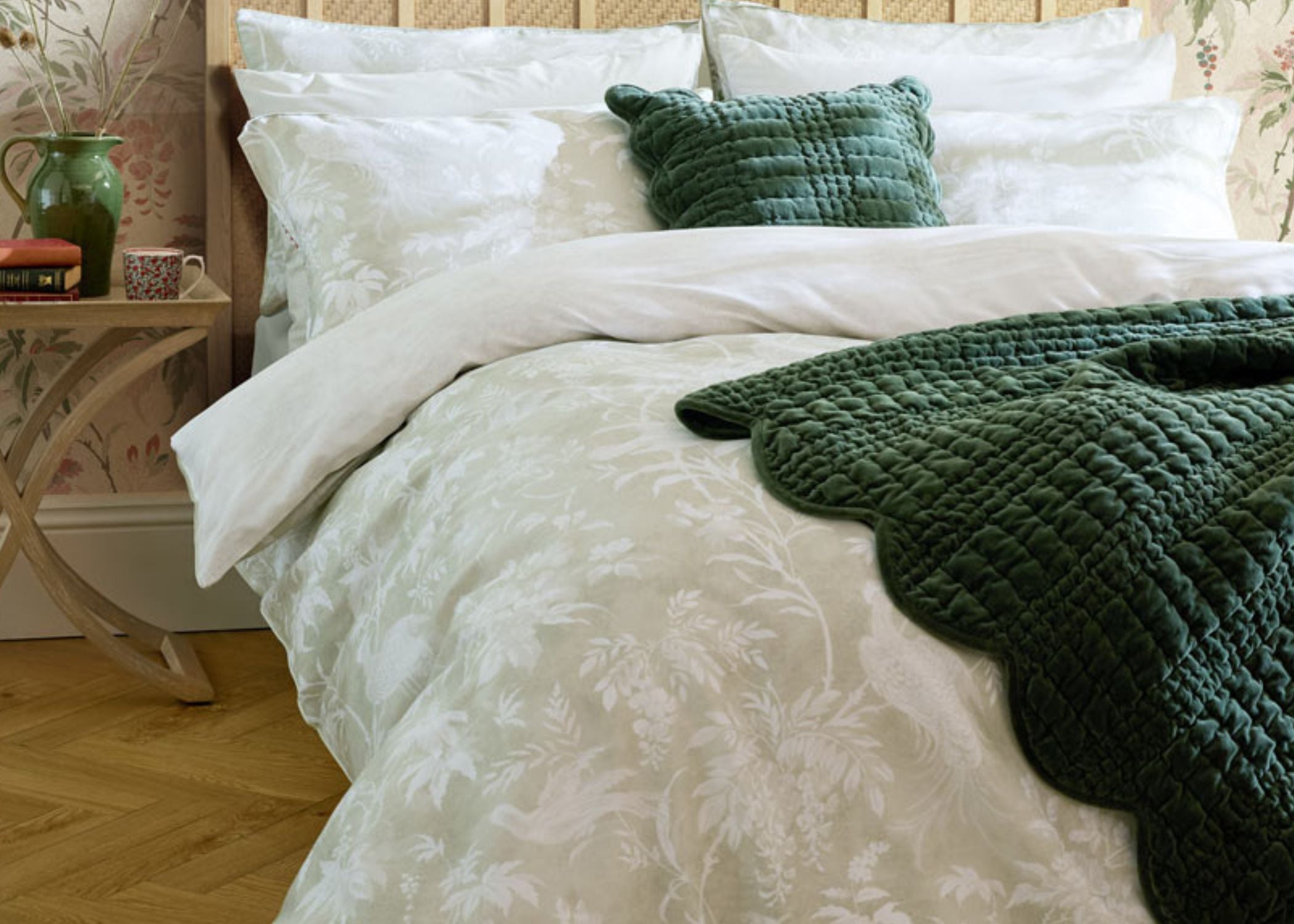 Laura Ashley "Brady Scalloped" Bedspread in Pine Green