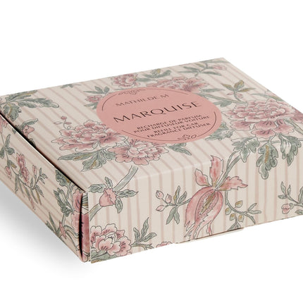 Enjoy the elegant charm of Marquise, Mathilde M’s iconic fragrance blending woody and spicy notes with the sweetness of vanilla and musk. This Escapades Parfumées car diffuser refill set lets you carry the signature... Read more
