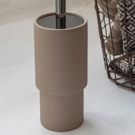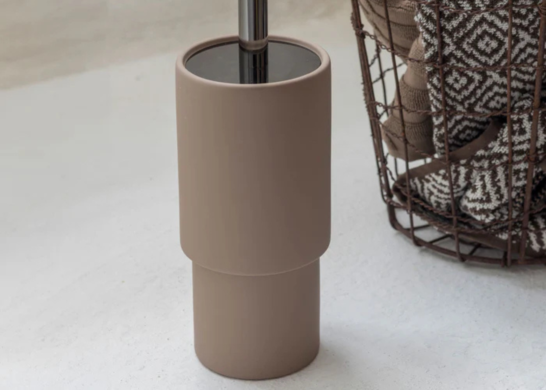 Transform your bathroom into a haven of modern elegance with the Shades Ceramics accessory collection in a luxurious nougat color.